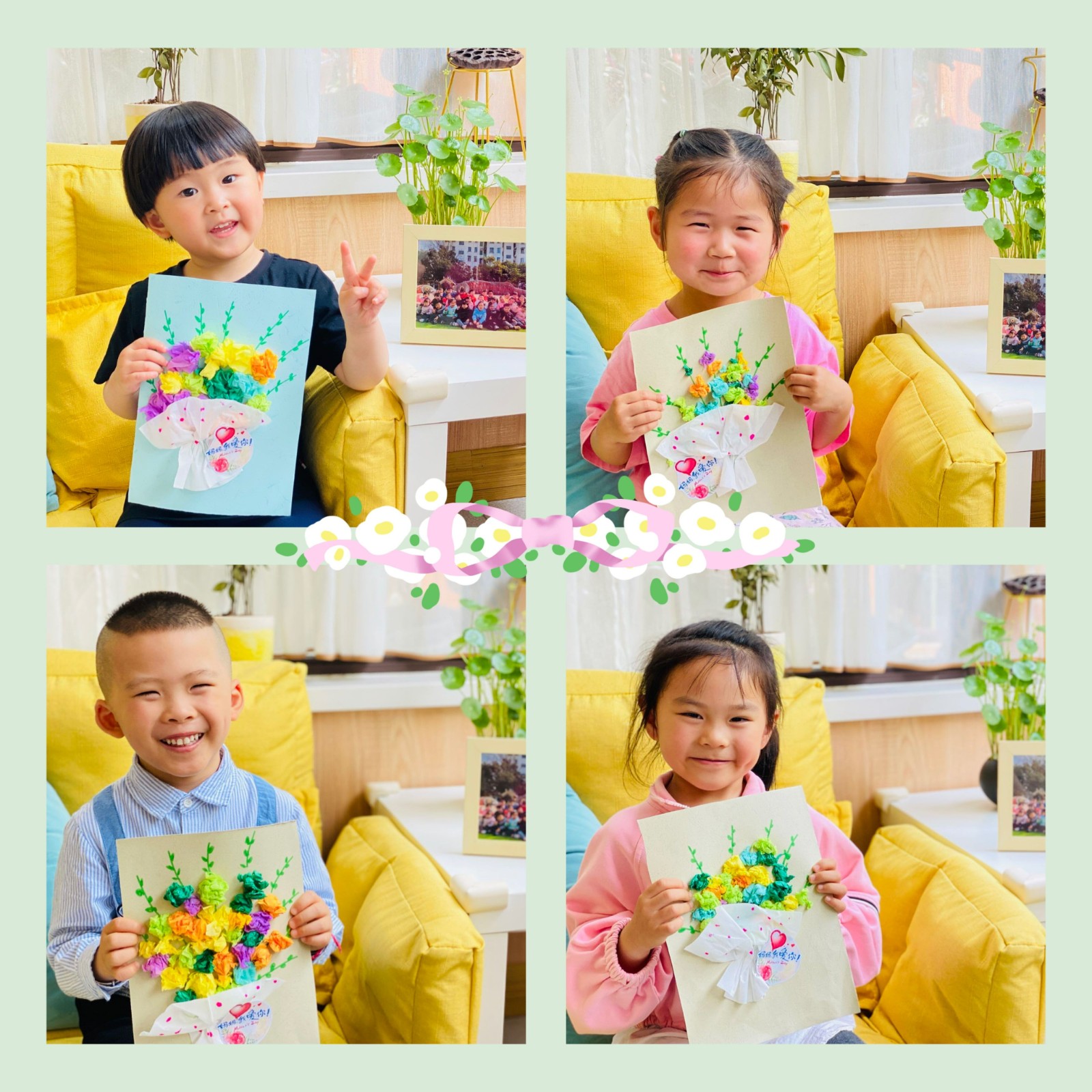 母爱是世界上最伟大的爱!为了让幼儿感悟浓浓的亲情,激发幼儿爱的情感,感悟在自己成长过程中妈妈所付出的艰辛和不易,从小培养他们懂得饮水思源,尊重、关爱妈妈,从而对妈妈产生了无比感激和敬仰之情。5月7日天景山第一幼儿园开展了一系列母亲节特别活动——“情暖五月天,感恩母亲节”。小朋友开始动手制作送给妈妈的礼物,看着一束束精美的花束,妈妈收到一定会很喜欢吧!岁月匆匆,唯爱永恒。愿孩子继续勇敢表达自己的爱意,让爱不转弯。祝所有母亲,健康平安,幸福快乐!