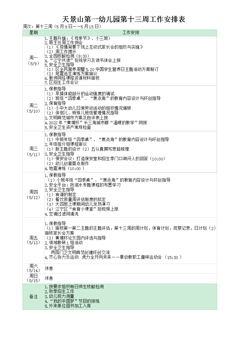 下一篇天景山第一幼儿园21-22下第十四周工作计划安排表