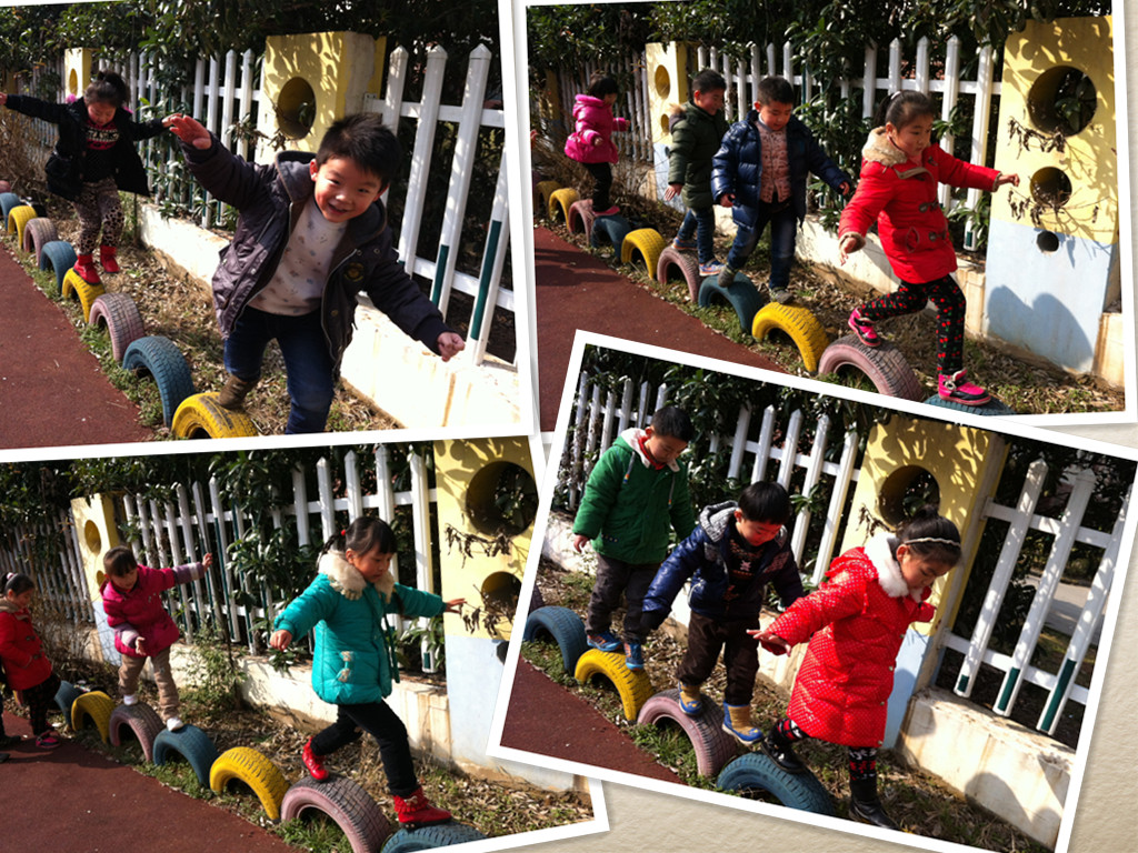 这是一节发展孩子平衡力,协调力的活动,在活动中孩子们好开心,大部分孩子的协调能力还挺好的,个别年龄不足的孩子有待于提高。还有些胆子较小的女孩子要多多鼓励!