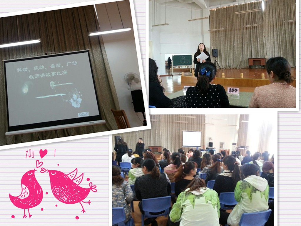 2014年4月3日,科幼、欣幼、盛幼、广幼所有教师在欣荣幼儿园一楼多功能厅倾听各园推选老师代表进行故事表演比赛!我园平凡老师张巧玲老师和陈婷老师上台演讲故事。故事中借用了精彩的指偶表演、PPT动画、儿歌演唱各种方式博得了台下老师们的一阵阵掌声!最后,平凡老师、张巧玲老师荣获三等奖、陈婷老师荣获一等奖的好成绩。祝贺她们!