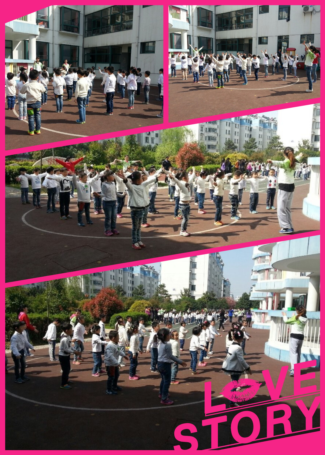 整齐的白衣服、牛仔裤和运动鞋,早操展示咯!瞧,我们的小膀子多有力!O(∩_∩)O