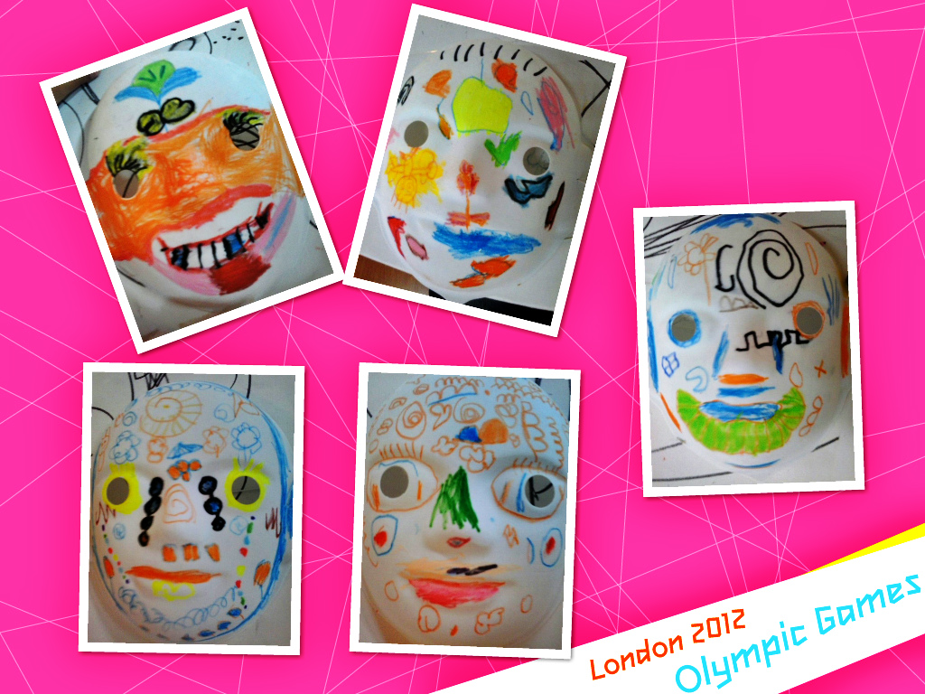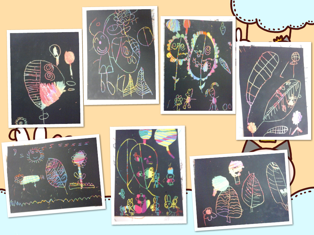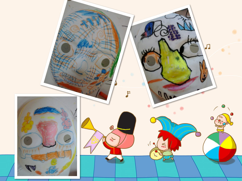 美工室作品欣赏:《面具》、《刮画--春》