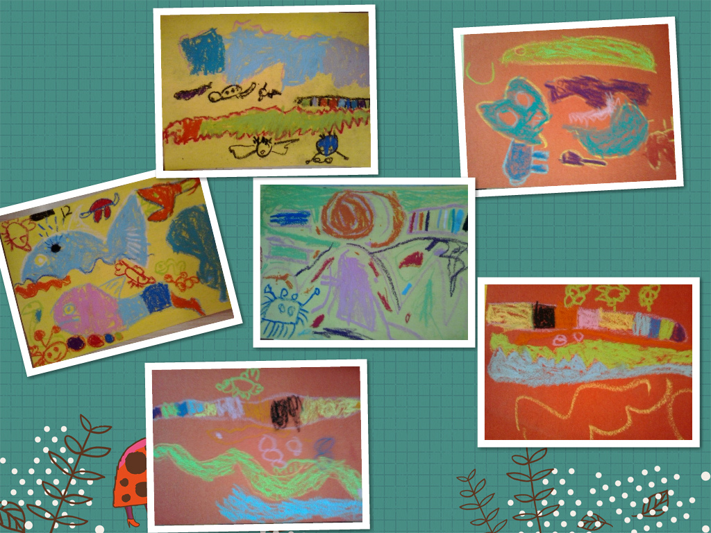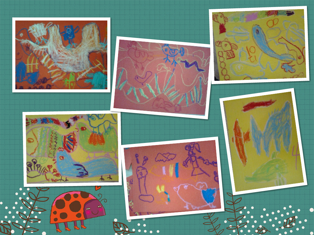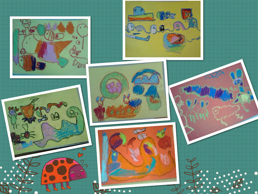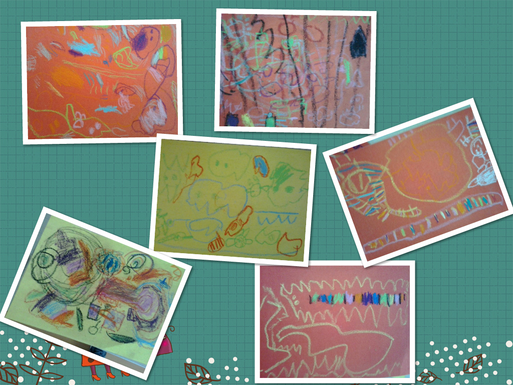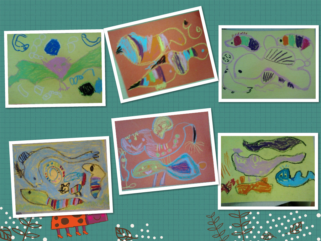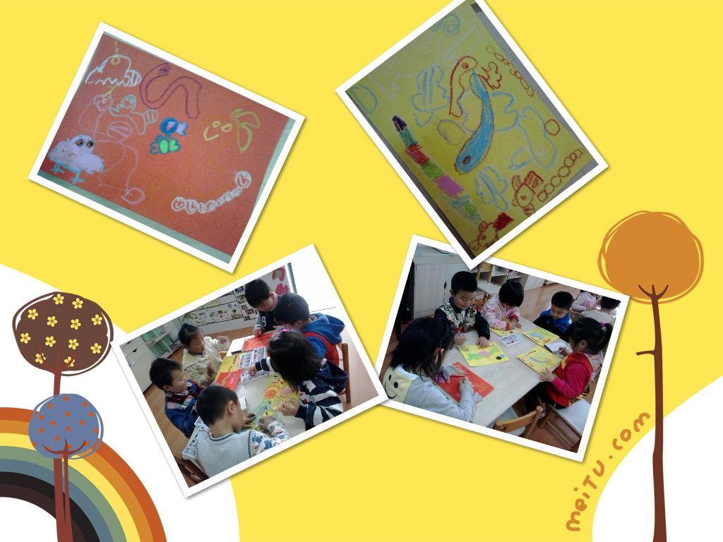 在砂纸上随意地画曲线,把曲线连接在一起,变成各种不规则的形状。借这些形状展开想象,进行添画。