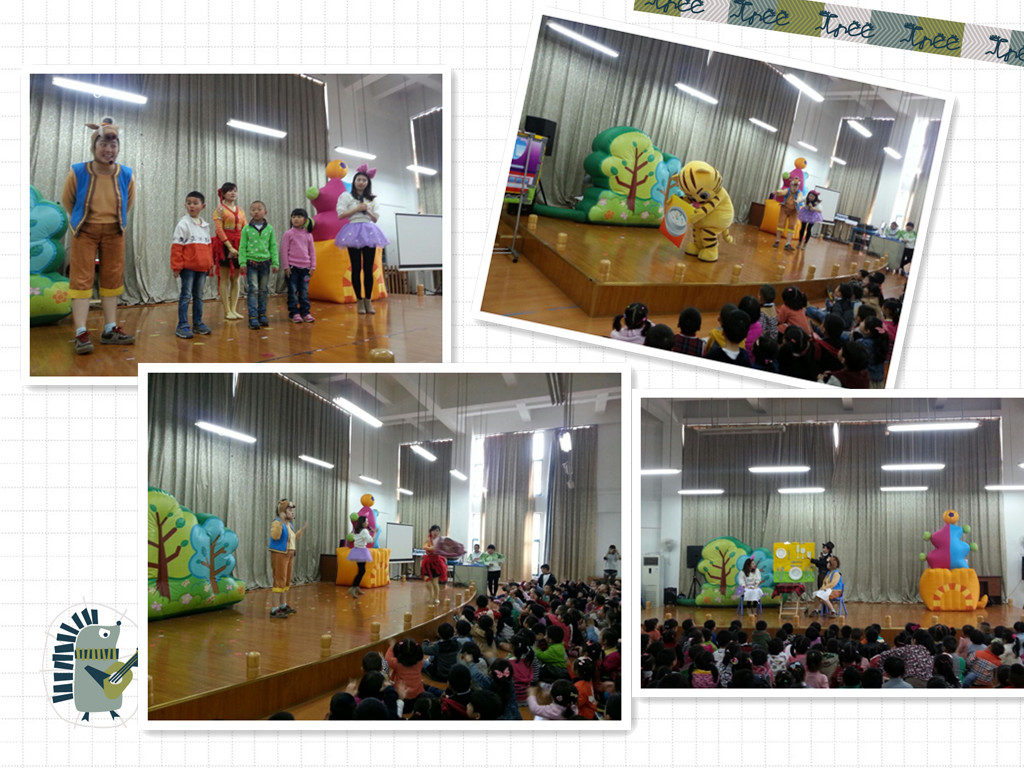 2014年4月14日(周一)下午,我们全园老师和孩子们在观赏快乐星猫的童话剧中,学会了各个国家的餐饮礼仪!还有小朋友积极上台与快乐星猫互动哦!好开心呢!