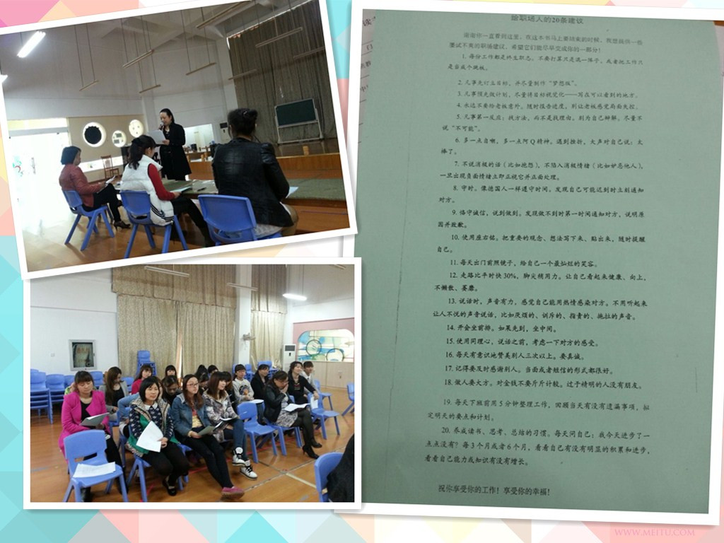 活动的开始,我们张海如园长和我们老师们分享了《给职场人的20条建议》