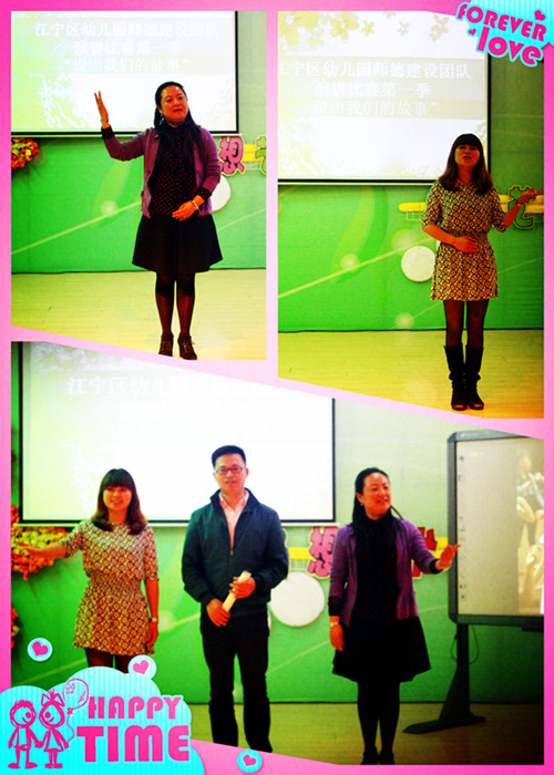 师者,德为先。师德建设是教育永恒的主题。我园在江宁区教育局托幼办组织的师德演讲比赛活动中,组建了一个由园长、教师及家长代表的三人组团队。通过初赛和决赛两轮赛事,张海如副园长的管理故事《我的中国梦——幼教梦》;朱新兰教师的师德故事《圆梦——长大后我就成了你》;陶健原家委会主任的家园共育故事《梦想的翅膀》分别荣获区级个人二等奖,同时团队也荣获区级二等奖。这种组团式演讲比赛形式,进一步凝聚和提升了幼儿园的团队合作力。