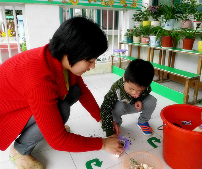 班级自然角创设活动开始了,为了体现老师、家长和孩子共同的参与性,我们请家长带来了废旧盒子进行装饰,并且让家长和孩子共同种植大蒜,相信孩子们看着自己和爸爸妈妈一起种植的大蒜在一天天长大,他们会更加开心的!