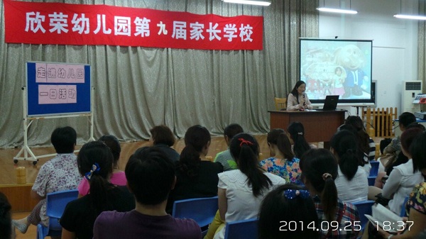 家长是幼儿的第一位老师,为了贯彻《指南》思想,我们小班开展了欣荣幼儿园第九届小班新生家长学校。2014年9月25日(周四)晚上六点半,我园倪云芳园长带领家长们学习了家长学校的各项规章制度,规范了家长学校管理。