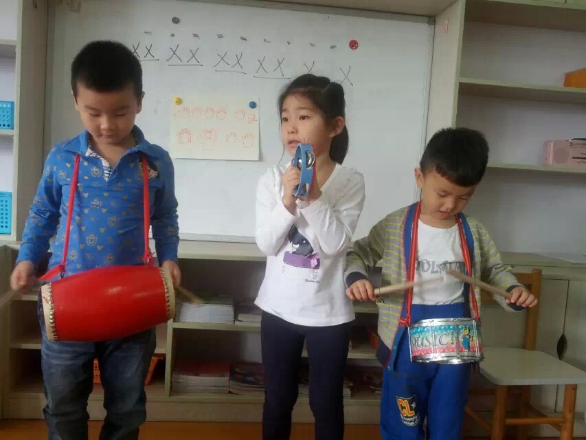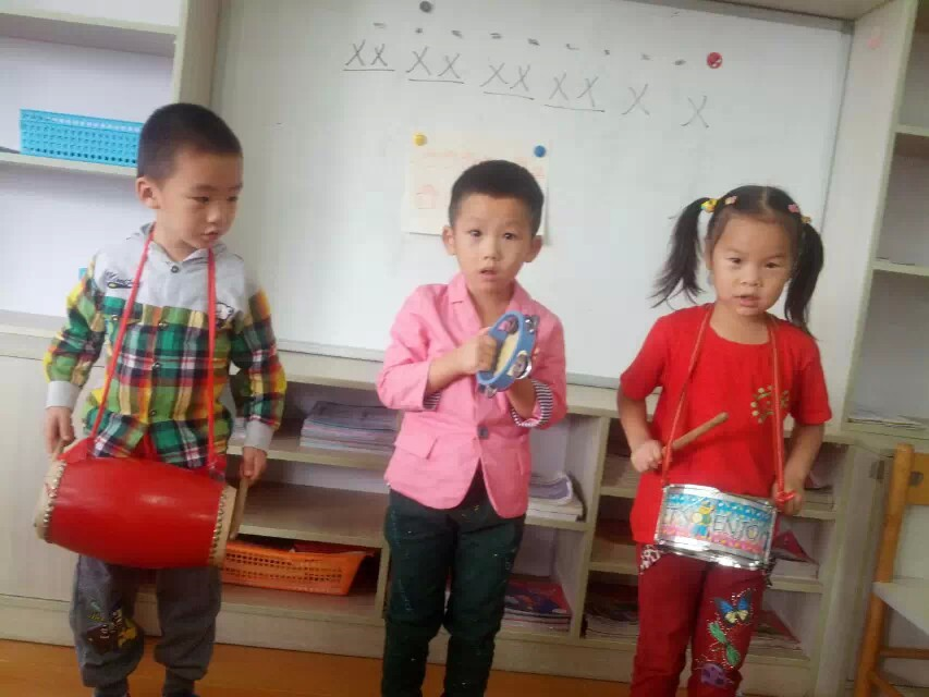 上周五我们进行了打击乐《敲鼓乐》,体会了不同乐器在一起敲打时发出不同的声音,感受到音乐的奇妙!