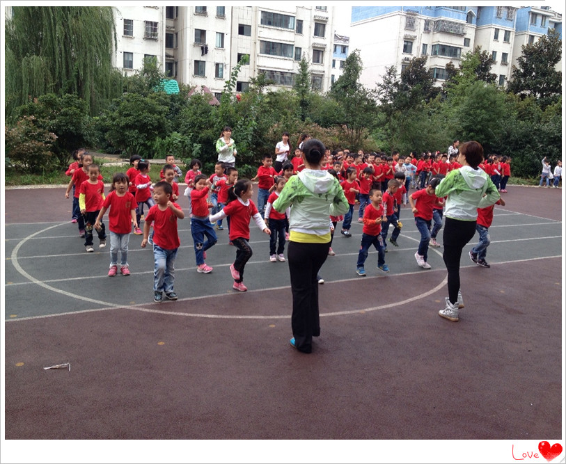 看,我们精神抖擞做着早操,像不像解放军叔叔,我们可棒了!我们获得了最佳精神面貌奖!呵呵
