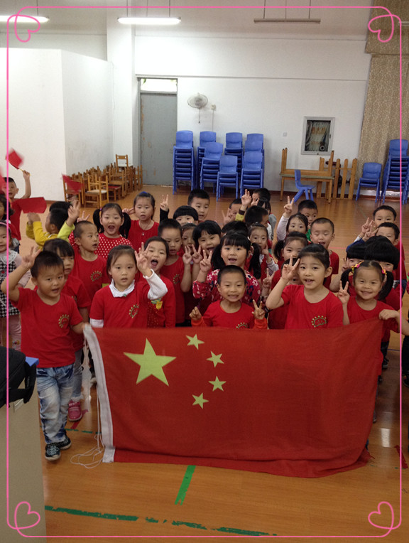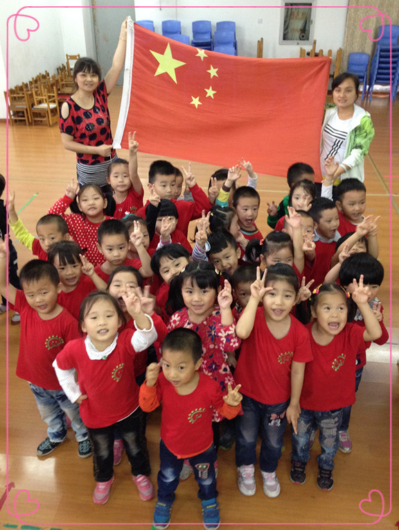 重阳节:爷爷奶奶的节日,正好结合国庆节,我们邀请了奶奶来园与小朋友一起过节唱红歌!奶奶们歌声嘹亮,唱的真的太好听了!小朋友们高举着国旗也非常开心!