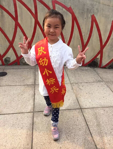 陈馨是个聪明伶俐的小朋友,小朋友们都十分喜欢你哦。这周你当上了礼仪小标兵,太棒了!