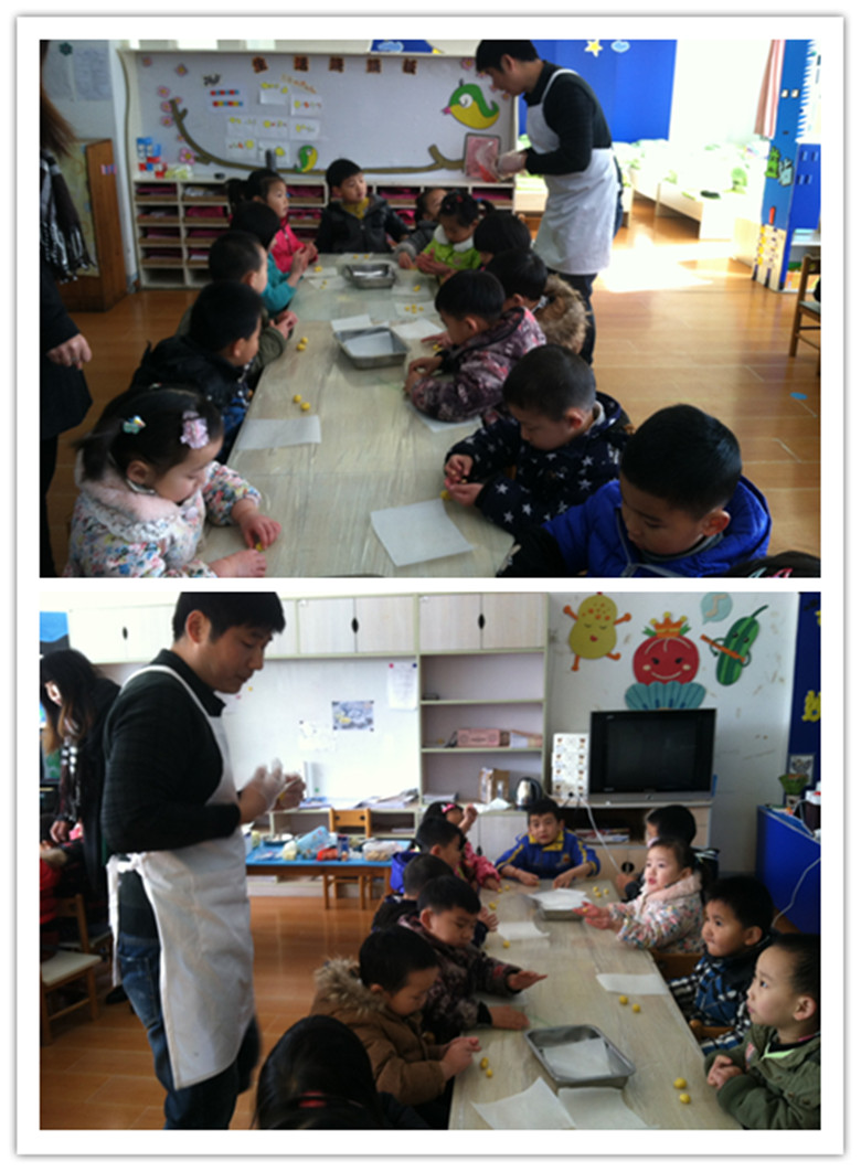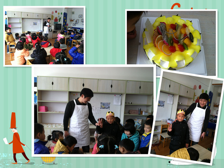 今天,爸爸老师不仅带我们一起制作了饼干,同时,他还知道我班有一位陈李建小朋友过生日,特意买了一个生日蛋糕所有小朋友共同给他过程生日,唱生日歌。