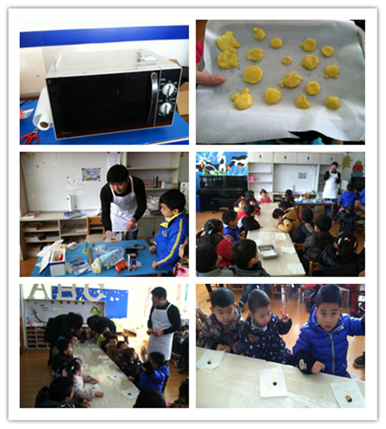 2014年12月2日上午,胡佳怡小朋友的爸爸走进班级课堂,带领孩子们一起体验不一样的教学之旅。佳怡爸爸作为我们班的爸爸老师来到教室教小朋友们制作饼干。活动前,佳怡爸爸做了精心的准备。我们和佳怡爸爸进行了沟通,初步了解了活动过程,并提出了相应的意见,如何使活动更富有童趣,吸引幼儿的注意。活动中,佳怡爸爸详细的演示了做饼干所需要的各种材料,以及每一个步骤,爸爸老师教的很认真,演示过程中还不停的提问发散幼儿的思维和激起幼儿学习兴趣。小朋友们看的特别仔细,小眼睛里充满了好奇。小朋友还亲手尝试了制作小饼干。通过爸爸老师的双手,小朋友亲自实践,小饼干不一会就做好了。参与制作饼干、烤饼干、吃香香的饼干,孩子们别提有多高兴了。在此次活动中,小朋友们不仅初步了解了做饼干的流程,同时和同伴们分享了自己的劳动成果,体验劳动的快乐。