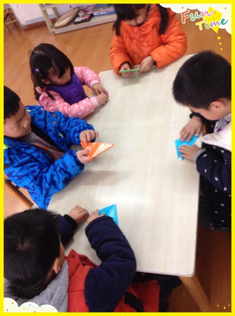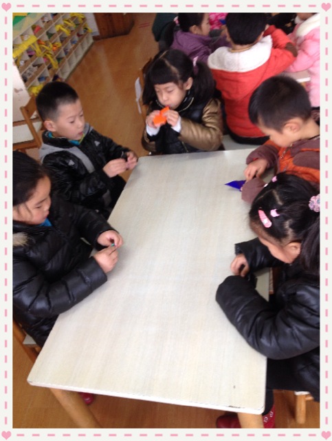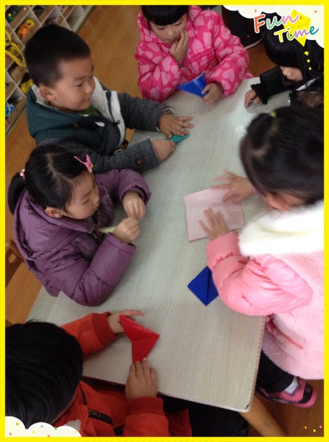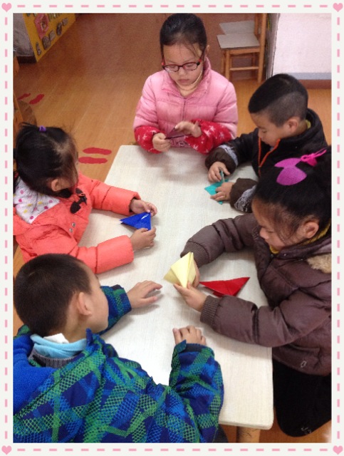 折纸活动开始啦,小朋友们一个个认真的折出漂亮的造型,都在比比看谁折纸折的最像呢,宝贝们,你们的每一个进步在老师的眼里都是最棒的,看着你们一天天成长,每一个都在努力的学习,老师很幸福,爱你们!你们认真的样子很迷人哦!