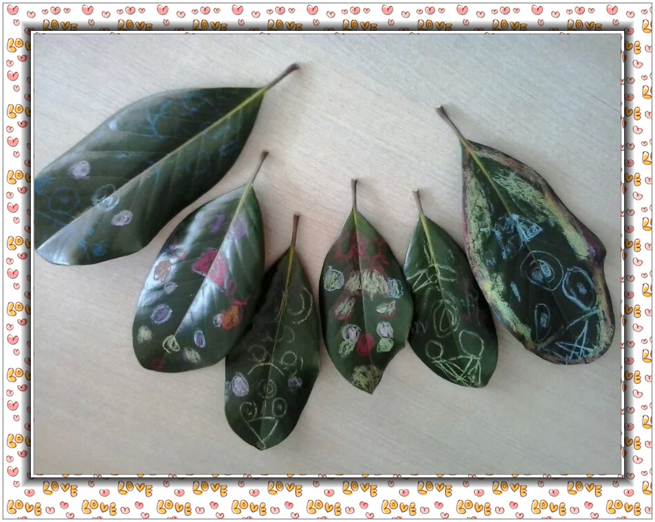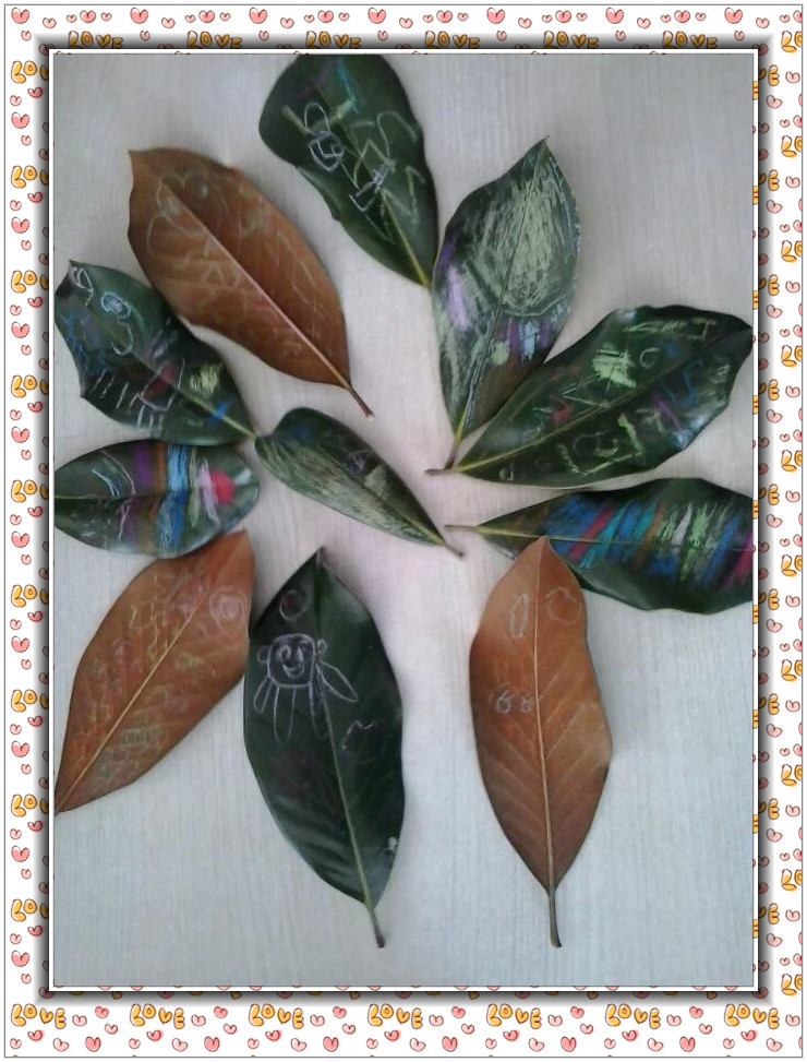 生活中处处存在着教育的契机,普通的广玉兰树叶在孩子们的手中变成了漂亮的书签。幼儿在制作书签的过程中体验创作的乐趣!