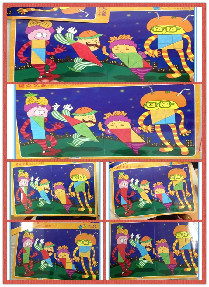 小朋友们的拼图游戏开始啦!孩子们跟着老师的口令给小人制作彩色的衣服去让他们参加舞会,孩子们最喜欢给小人制作彩色衣服,纷纷开始操作起来,操作的非常认真!操作结束后纷纷展示给老师看,炫耀自己的成果。小朋友们真的很棒!彩色衣服制作的非常漂亮,当老师告诉他们,小人非常感谢你们为他们制作的多彩的衣服!孩子们听后更加开心!