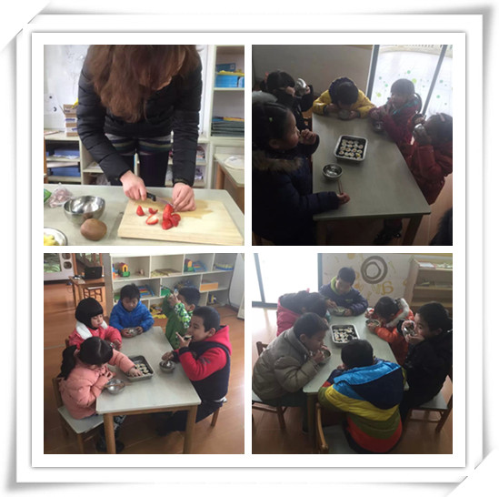 之后我还教小朋友们卷寿司卷,因为时间比较长,小朋友们都饿了,听到说别的班上开饭了,我们的寿司还没卷好,但是小朋友们还是耐心等待。这时还有小朋友上台表演,唱歌,跳舞,讲故事......真是其乐融融,真心比较享受这个过程。