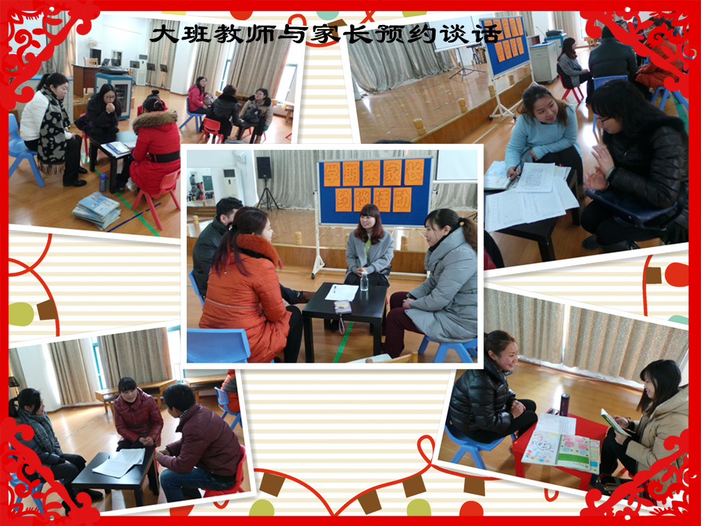 本学期即将结束,在以往的学期末班级会召开家长会,向家长汇报本学期班级的总体工作,但发现有的父母没时间就派爷爷奶奶来开会,结果失去了会议的意义今年我园尝试了学期末家长预约谈话的形式,初显成效。暑期我园老师通过网络培训学习了《幼儿园家长工作的策略》后,利用业务学习等形式探究了“家长预约谈话”的活动。在2015年2月4日全天开展了学期末家长预约谈话活动,教师提前三天各家长预约4日谈话的时间,和家长面对面、一对一地进行交流,针对孩子在园和在家的一学期的表现,结合学期末测查评估和成长档案填写情况及孩子的发展状况进行了沟通。
