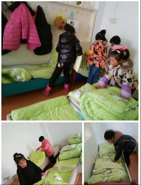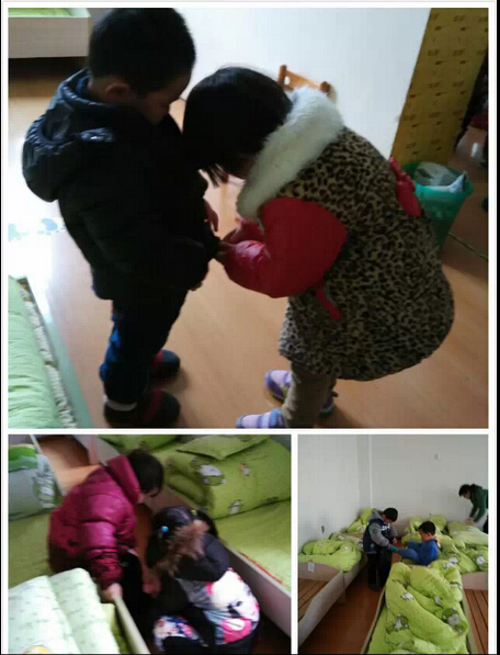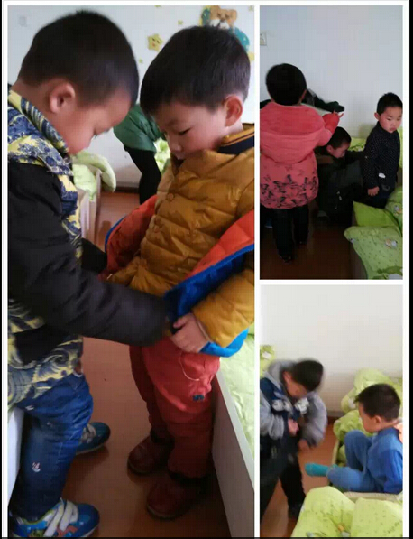 昨天是“学雷锋日”,我们星星班的孩子来到了盼盼班,帮盼盼班的弟弟妹妹穿衣服、叠被子,我们体会到了帮助别人的快乐!