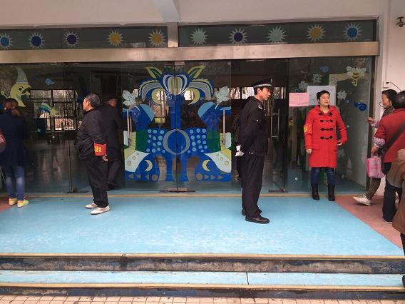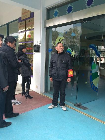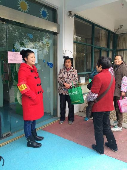 我们是欣幼第三周的家长安全员,我们来自大一班张武睿小朋友的家长和大二班孙天琪小朋友的家长,看!我们正在帮助保安维持幼儿园放学时的秩序呢!