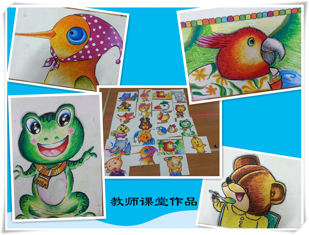 2015年3月31日中午,我园老师又迎来了闫老师的美术课堂,今天闫老师给老师们培训的主题是“动物头像油画棒绘画”,闫老师通过PPT介绍,让老师们对色块、色系、渐变色的理解,在画动物头像的构图中闫老师强调比例和重点的突出,在涂色过程中指导老师们如何运用渐变色,将重点的进行勾线等,老师们认真听讲、虚心请教,学到了配色的方法,及通过点缀让画面充满立体感,并表示将运用到对孩子的美术教学活动中。一起欣赏老师们的作品哦!