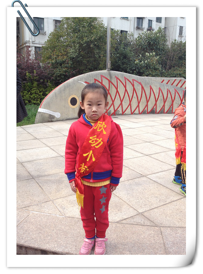大家好,我叫陈思琪,我是本周礼仪小标兵。本周的我能每天按时来上幼儿园并与老师小朋友们主动打招呼,帮助老师发放玩具,是第五组的小组长。我会继续加油的!