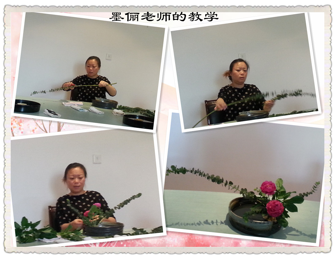 2015年4月3日中午,我们又迎来了墨俪老师的插花课堂,今天培训的主要内容是倾斜应用型的插花,墨俪老师讲解和演示了倾斜插花的要领,学员们插花过程中,学员们虚心请教认真学习,墨俪老师耐心指导,一幅幅美丽的插花作品呈现了,大家感受到春暖花开的意境!