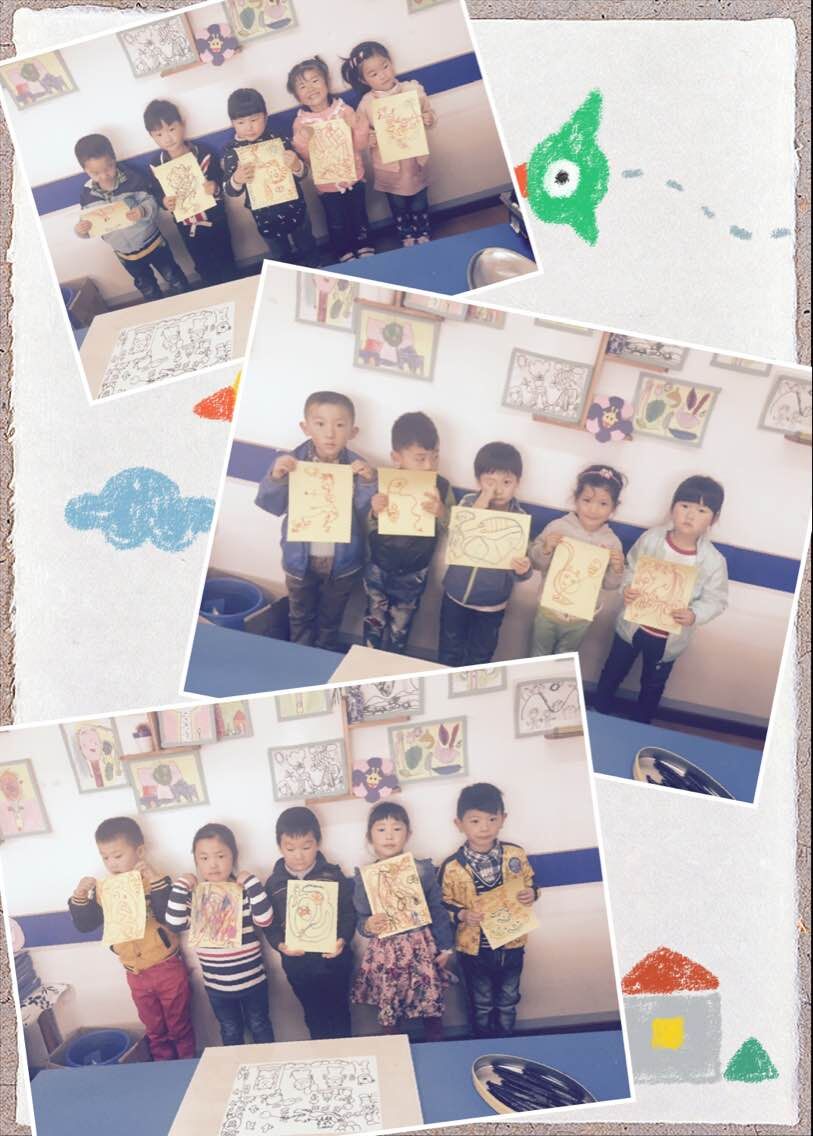 今天又到了开展美术活动了,孩子们可开心了,今天的活动是借形想象,孩子们都在线条中找出了小动物并大胆的画了出来,孩子们的想象力很丰富哦!