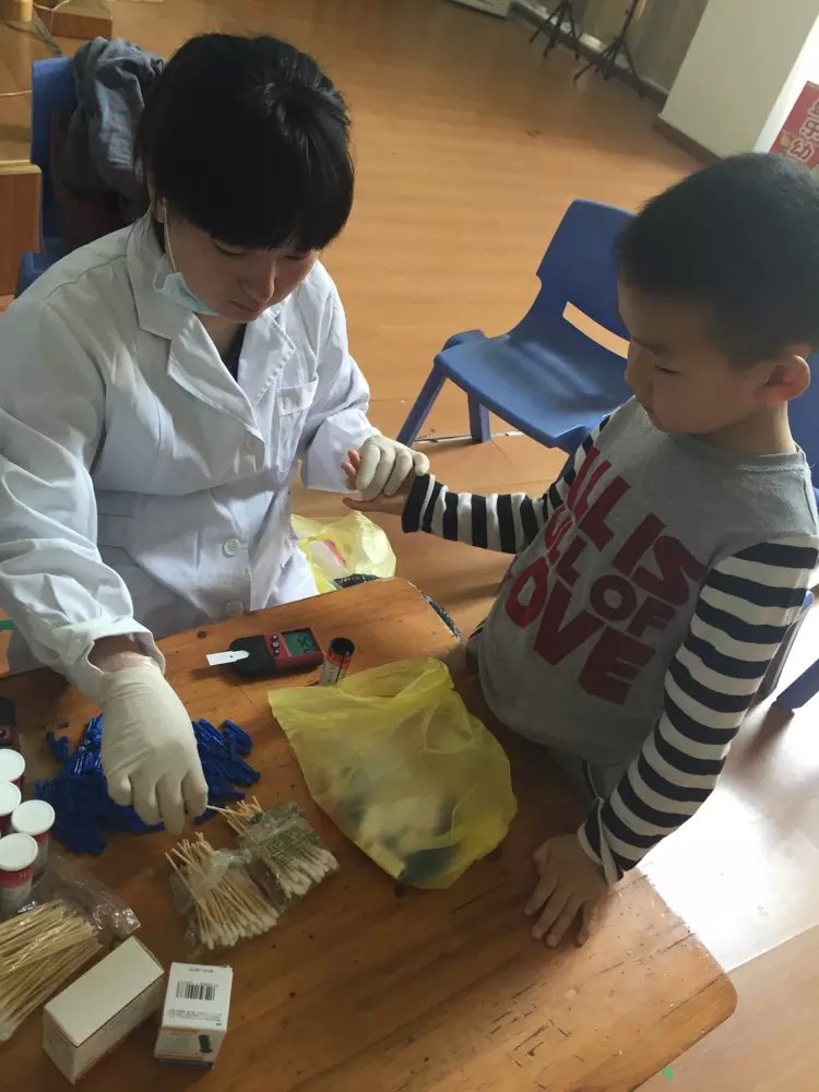 今天,方山卫生院的叔叔阿姨们给我们班的孩子体检,在测血的时候,孩子们都非常勇敢,一个也没有哭哦!
