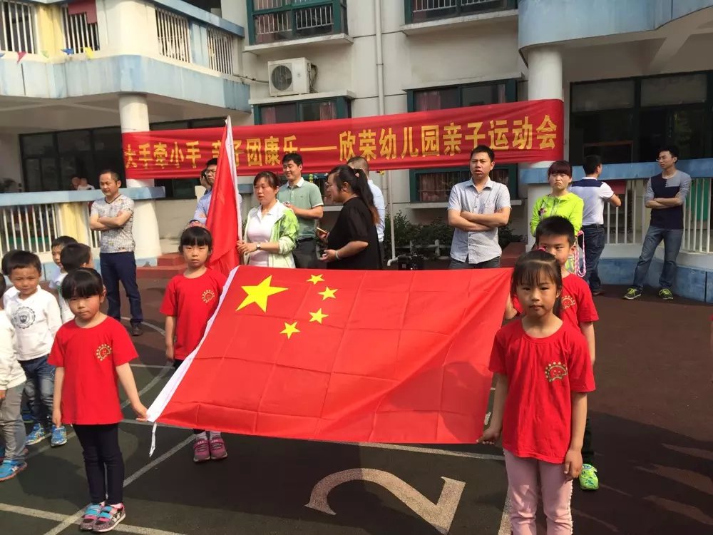 2015年4月28日南京市江宁区欣荣幼儿园第九届亲子运动会正式开幕!大一班的小朋友们担任国旗方正,他们个个英姿飒爽!