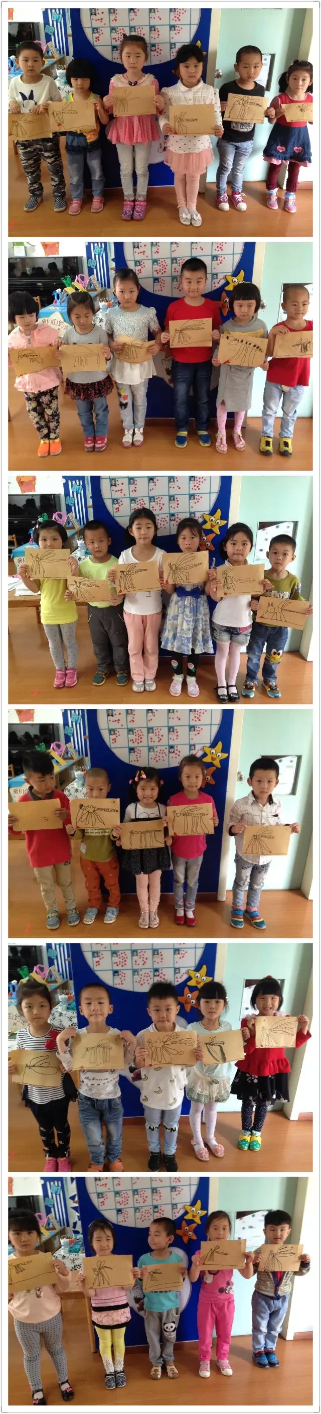夏天到了,讨厌的蚊子出来觅食了,把我们小朋友叮的到处都是包,有的蚊子叮起来还会肿,这样的蚊子讨厌吗?小朋友们:“讨厌”那今天我们就把讨厌的蚊子给画下来好吗?“好”小朋友们开始认真的作画了,有的小朋友画得蚊子可大咯,我问:你的蚊子怎么这么大啊?”这位小朋友回答我说:“因为它吃饱了,肚子里装的都是我的血。”讲的我哭笑不得,太可爱了,孩子们的蚊子个个画得都很棒哦!个个把讨厌的蚊子画成讨喜的蚊子咯!哈哈