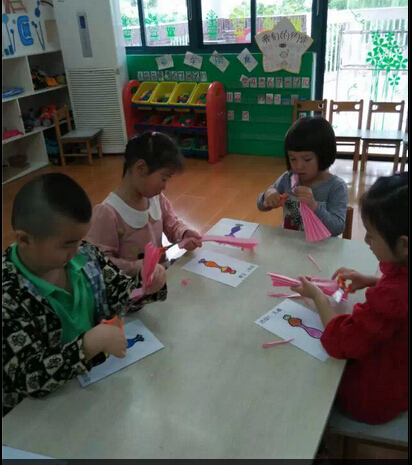 手工时间又到了,我们通过涂、折、剪、贴制作成了一只只美丽的孔雀,快来欣赏一下我们的孔雀吧!