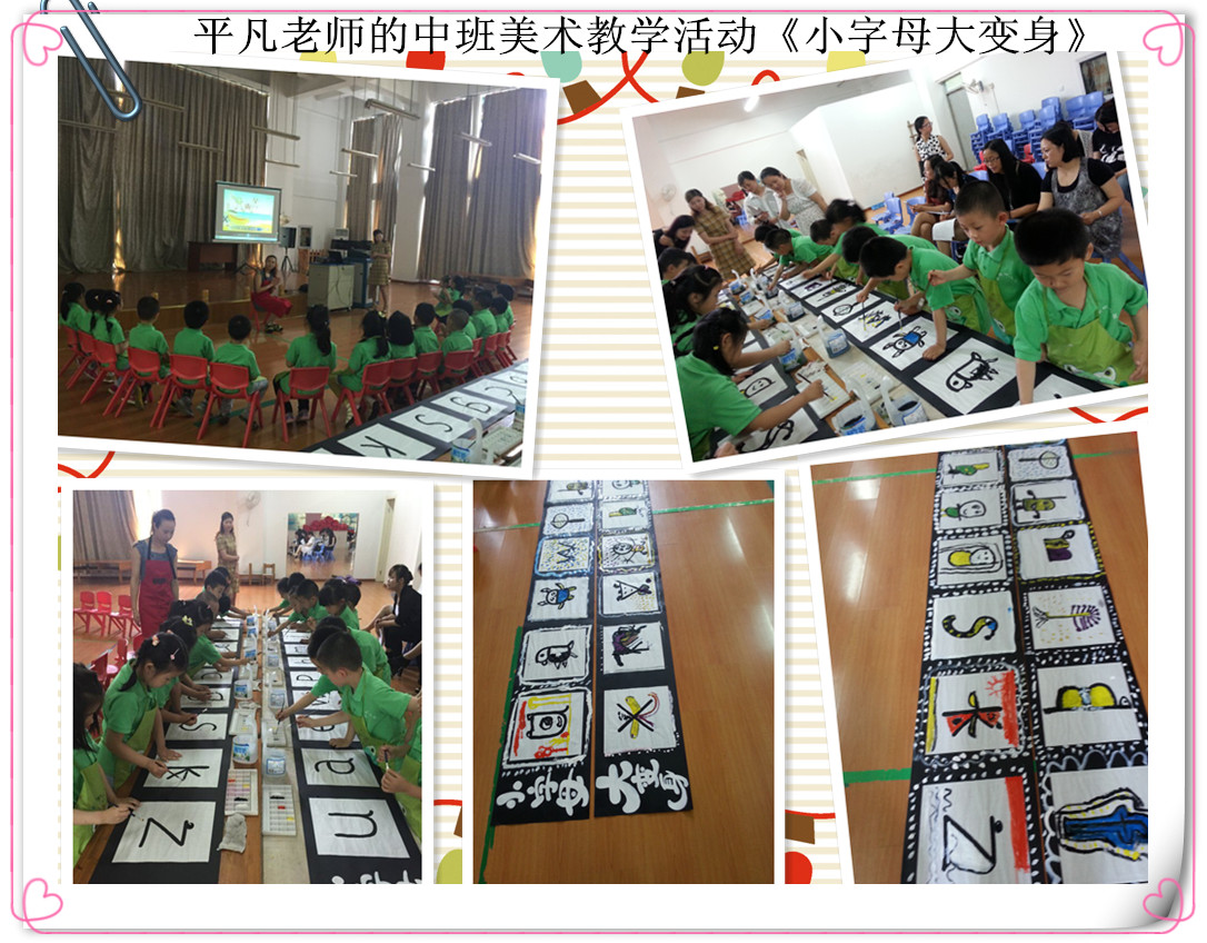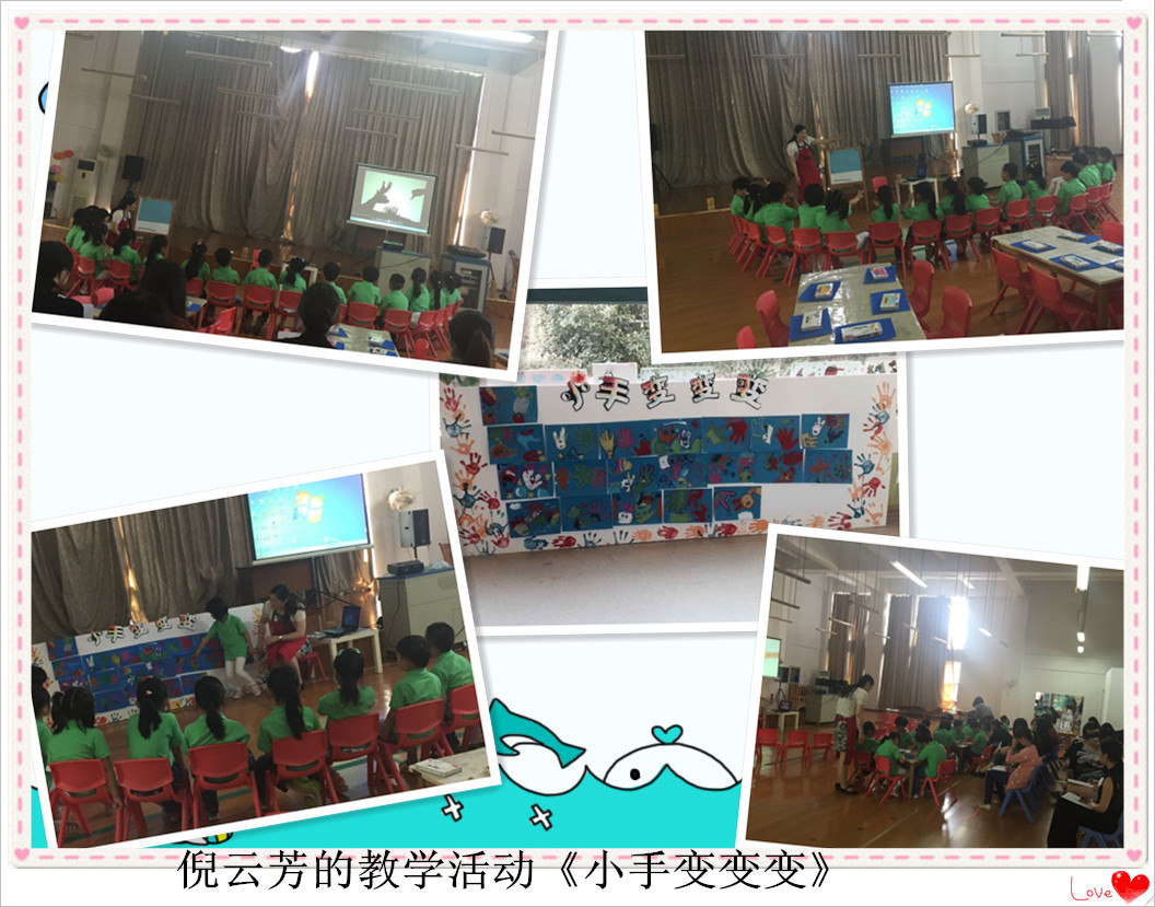 为发挥我园中层领导和教师的模范带头作用,6月5日上午我园开展了中层教学展示活动,分别是:区教科研带头人倪云芳副园长执教的大班美术教学活动《小手变变变》、区学科带头人园科研组长李小庆执教的小班美术教学活动《好吃的冰激凌》、区骨干教师园教研组长平凡执教的中班美术教学活动《小字母大变身》,科学园幼教中心内的幼儿园中层领导及我园教师进行了观摩,三节不同材料的绘画工具,新颖的教学形式吸引了观摩者纷纷拿起相机给孩子及作品拍照,大家受益匪浅。
