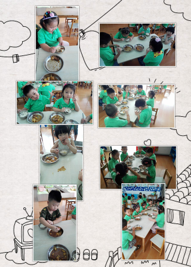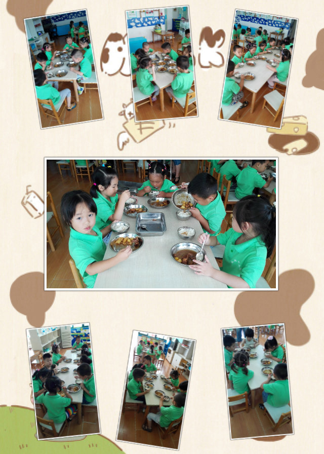 期待已久的中班生活开始了,孩子们适应的很快,呵呵幼儿园的饭菜就是好吃!看我们吃得多香啊!