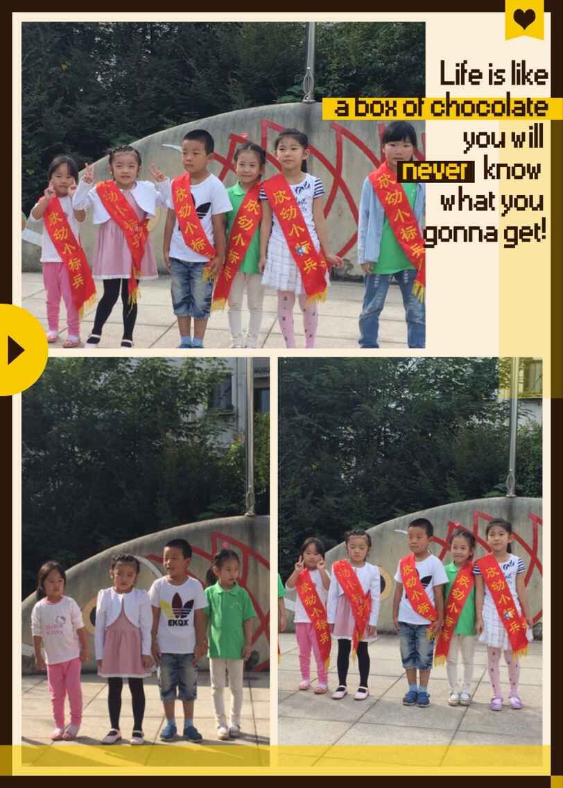 开学两周咯,在这两周里,李蕊小朋友的表现很棒,每天开心入园,能和老师小朋友一起游戏,也能帮老师做力所能及的事情,所以被评为小标兵!