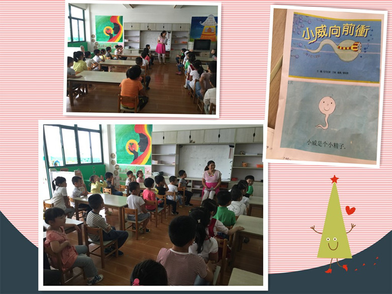 经常有孩子会问家长自己是怎么来的,父母们总是含糊其辞,对我们老师来说也不知如何来告诉幼儿。王依晨妈妈怀了宝宝,这学期我们班便邀请了王依晨妈妈来开展家长助教活动。依晨妈妈借助绘本故事《小威向前冲》和自身特点,用生动、有趣、简单的语言给孩子阐明了生殖和遗传这个原本很复杂的道理。活动中,孩子们仔细地聆听故事,回答依晨妈妈提出的问题,还一起体验怀孕时的辛苦。活动结束后,孩子们还说:“希望下次依晨妈妈再来给我们上课”。