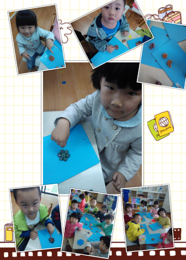 今天老师教我们做了好看的油泥花,首先我们先搓了一个大圆做花心,然后再搓6个同样大小的圆做花瓣,花心放中间花瓣围一圈,小花就完成啦!