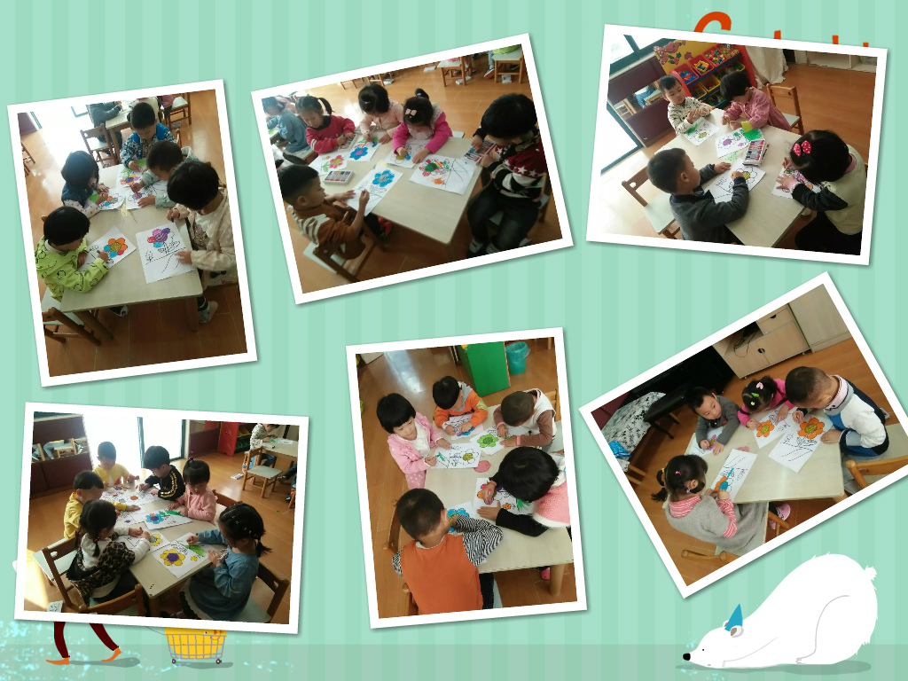 孩子们经过一系列的涂色练习,涂色能力有了明显的提升。上周我们带孩子们进行了给花宝宝穿衣服的活动。