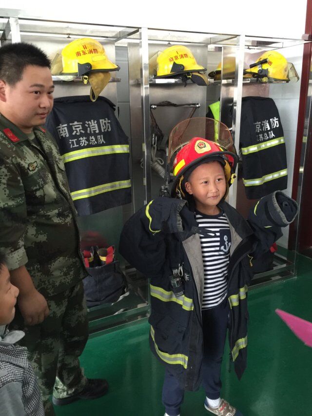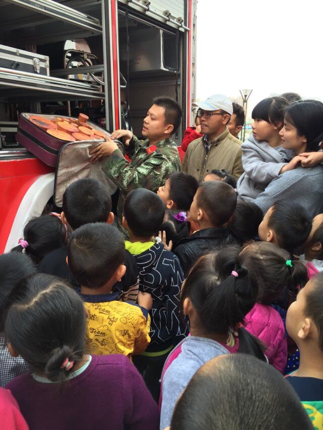 为了增强幼儿消防安全防范意识,将安全教育纳入幼儿的一日活动中,2015年10月30日下午两点,我们大班组织幼儿和家长去参观消防基地,与消防员叔叔们来个亲密接触。