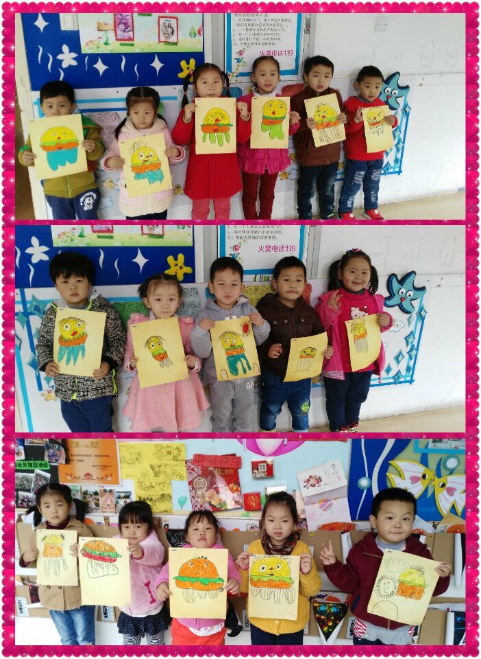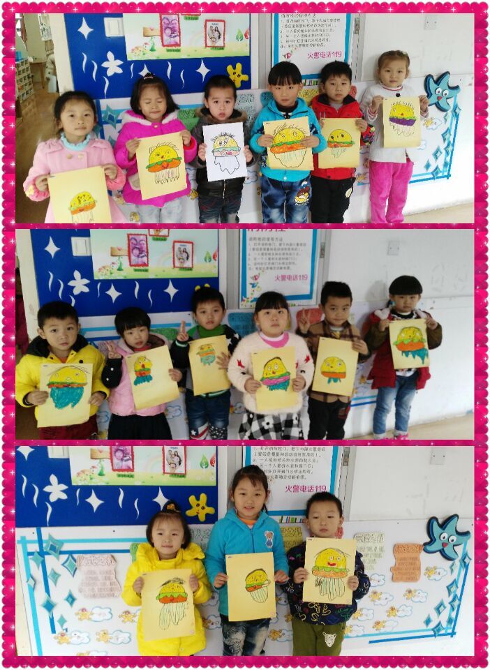 今天的美术活动是绘画《汉堡爷爷》,孩子们特别感兴趣,他们都了解或者吃过汉堡包,所以有一定的生活经验,所以大家都能大胆表现,一起来看看吧!