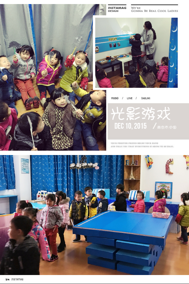 今天下午我们一起去了科发室游戏,大家都非常兴奋,这次我们探索的是光影游戏,宝贝们坐在一起玩着影子游戏,我们还配合影子道具演了一个故事,光影游戏很有趣哦!