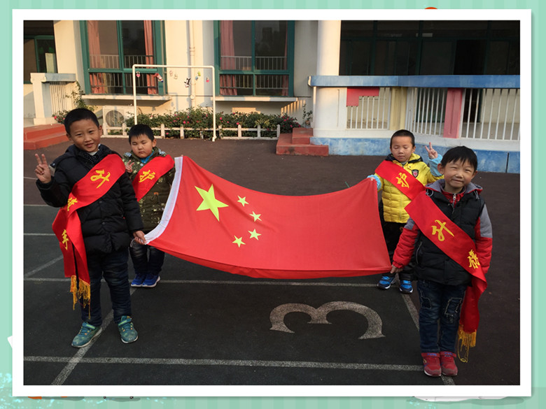 这次的升旗手是:陈李建和季炜涵;护旗手是徐寅和乐墨轩。升旗仪式上,他们有模有样的护卫着国旗升上了天空,心中也充满着自豪感!