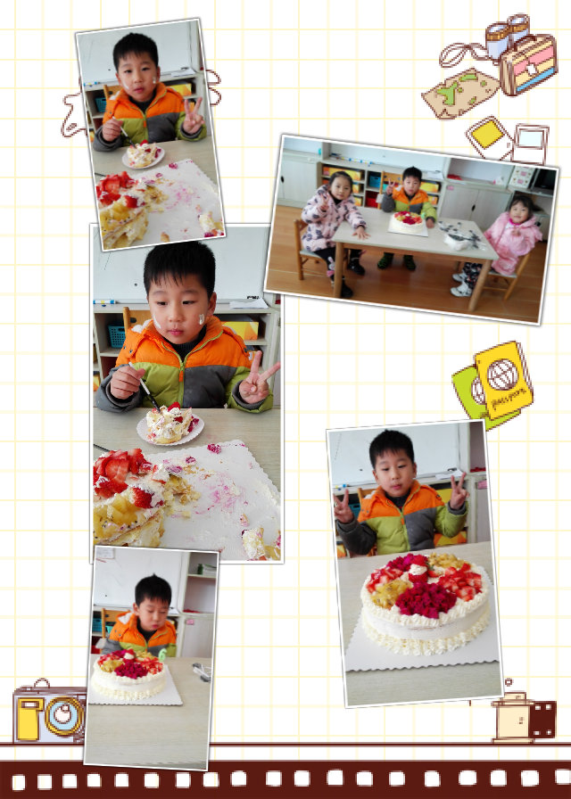 大家好!我是蒋刘毅,我最开心的事情就是在幼儿园和小朋友一起过生日,妈妈为了我的生日,特意让她的朋友在家做了一个蛋糕。