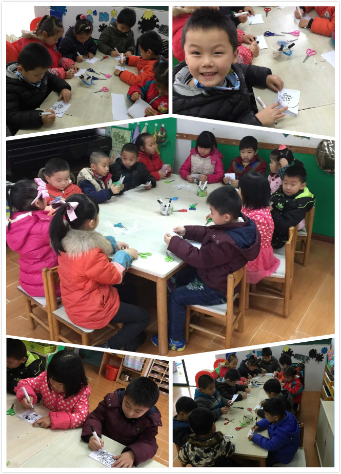 书是孩子们的朋友,孩子们喜欢阅读图书。我们首先引导孩子们了解书的构成:封面、封底、内页、页码、图案、文字等等,在了解书的基础上我们又指导孩子们制作自己的小书:剪裁、绘画、装订等。瞧,他们做的可认真了!