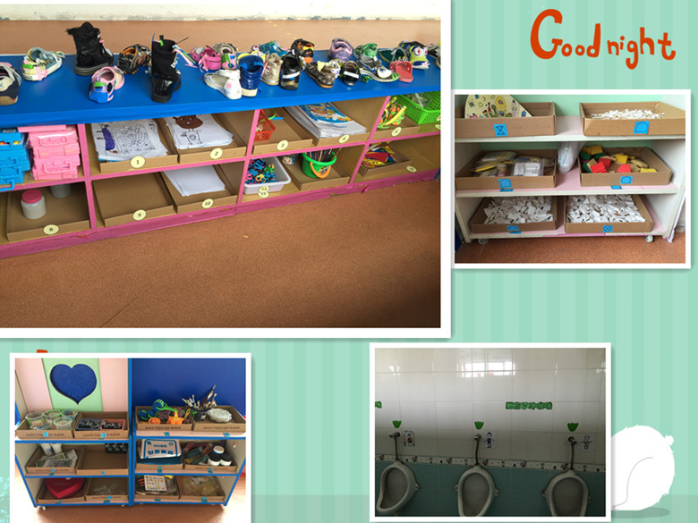 环境是无声的语言,环境的作用是潜移默化的,具暗示性,其效果往往比教师的言传身教来得更实在。6s管理进入班级后,教师通过与幼儿共同讨论、贴班级小标识起,我发现利用环境中的各种各样的标记与幼儿进行“对话”,为我们创造了一个更加有序的班级。