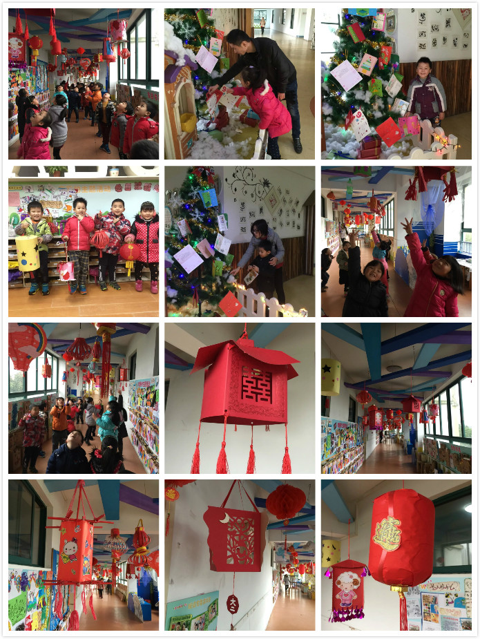 随着新年脚步的临近,我们班所有的家长和孩子在老师的带领下都积极快乐的行动起来了。家长和孩子们进行了亲子制作“灯笼”,纸盒的布艺的剪刻的,每个家庭的灯笼制作都别具一格,我们将红红的灯笼悬挂在班级走廊营造新年气氛,让孩子们欣赏并感受新年的喜庆。家委会家庭制作了圣诞贺卡,孩子们也自制了新年贺卡,相互赠送祝福。结合圣诞节元旦,王骏涛和龚书瑶的爸爸妈妈还给孩子们准备了平安果、糖果、玩具等礼物,幼儿园也为孩子们准备了圣诞袜,在新年到来之际,孩子们收获满满,开心满满。