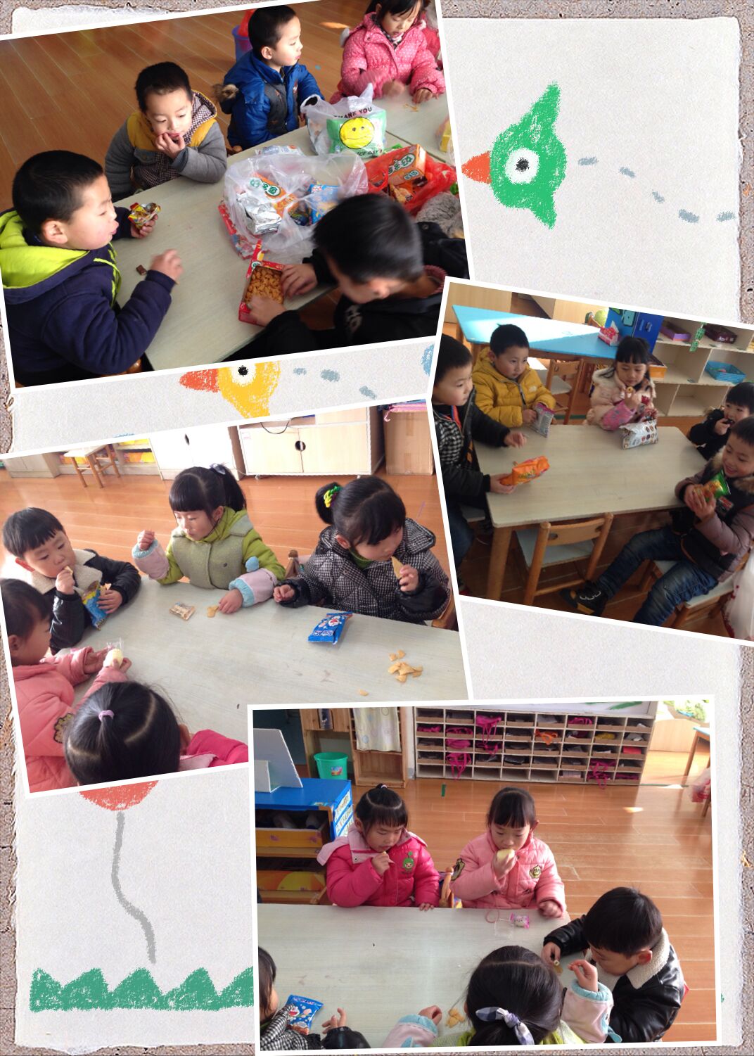 我们小朋友庆祝元旦活动,进行了食物分享,大家都带来了好吃的零食,看我们吃的多开心!