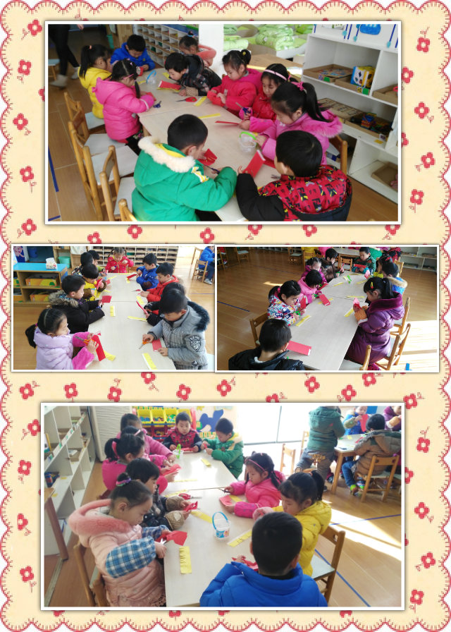 新年离我们越来越近,孩子们的主题活动也在开展《红红的新年》,学习了很多过年的习俗,例如:过年要吃年糕,过年要穿新衣,过年要买年货等等,大家还一起制作了红红的灯笼,挂在作业栏中,渲染出过年的喜庆!