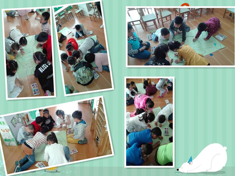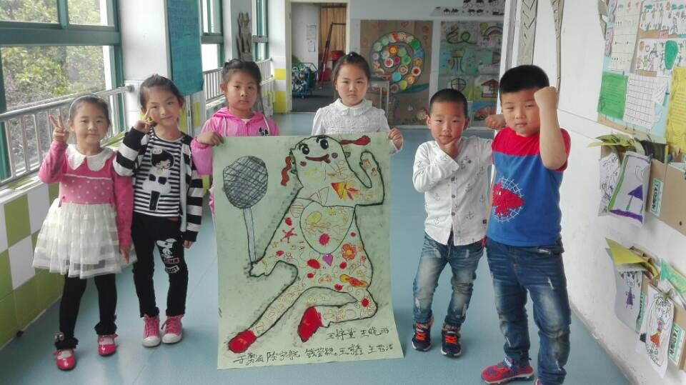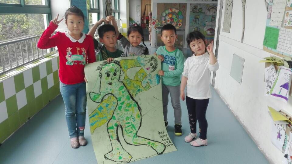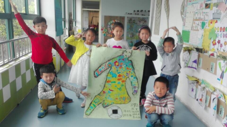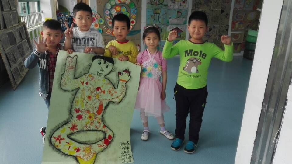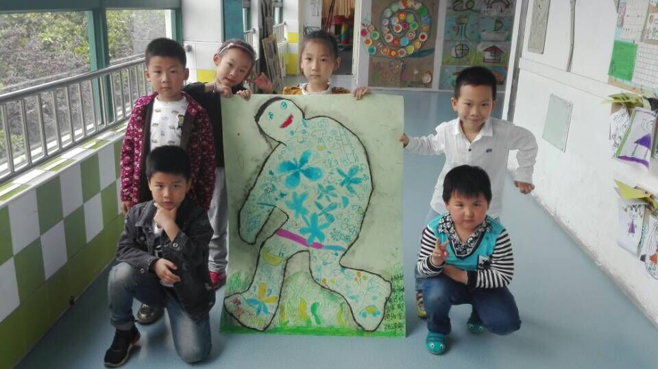 今天开展了创意美术“真人一比一”活动,本次活动的主旨是让孩子分组合作及添画,共同完成一张大作品,体验合作的快乐。在活动中,孩子们兴趣高涨,欢天喜地的在充满乐趣的宽松环境中巧妙构思,创意加工,有仰着的,趴着的,坐着的……千姿百态,孩子们自主涂鸦,灵活上色,有限的空间萌发出无限的创意,在欢乐的大世界里体验着合作的乐趣。